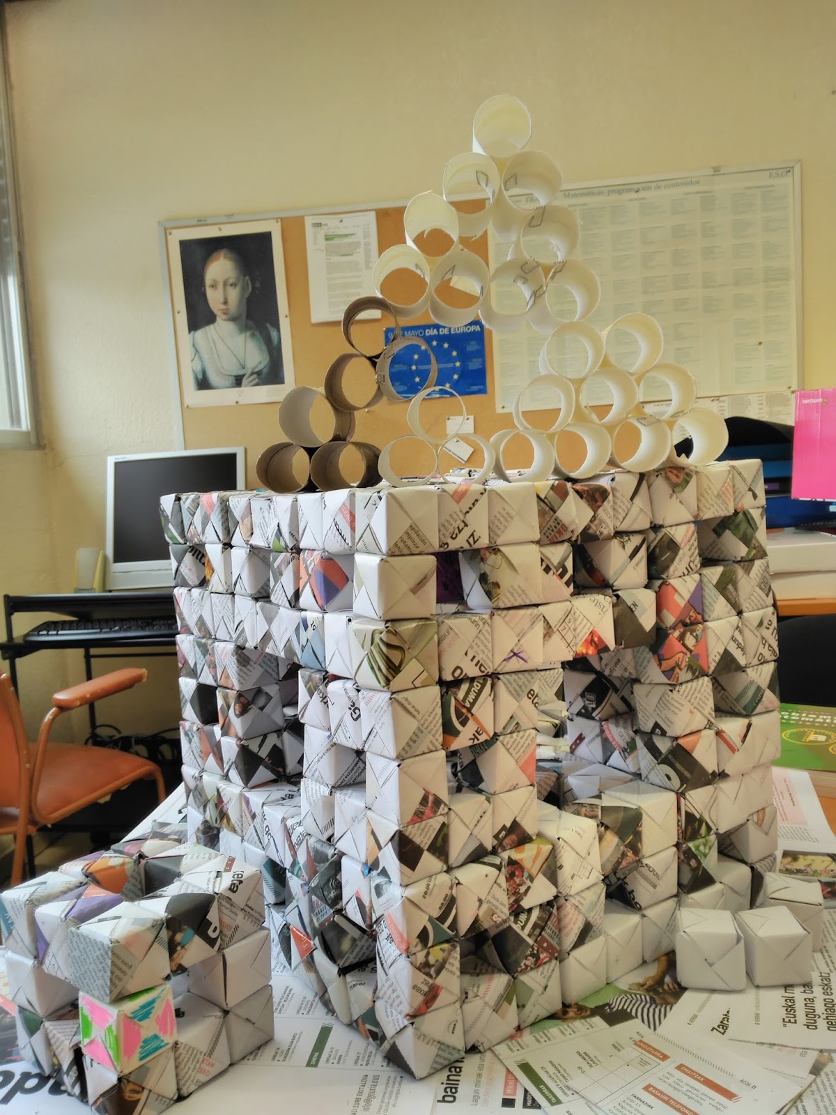Kaixo. aurten Agenda21 proiektuaren gaiarekin lotuta (kontsumo arduratsua) matematika mintegitik jarduera hau antolatu da, ikasle guztion artean gabonetako zuhaitz bat eraiki dugu, oso fraktala eta ekologikoa! Mila esker zuen laguntzagatik.